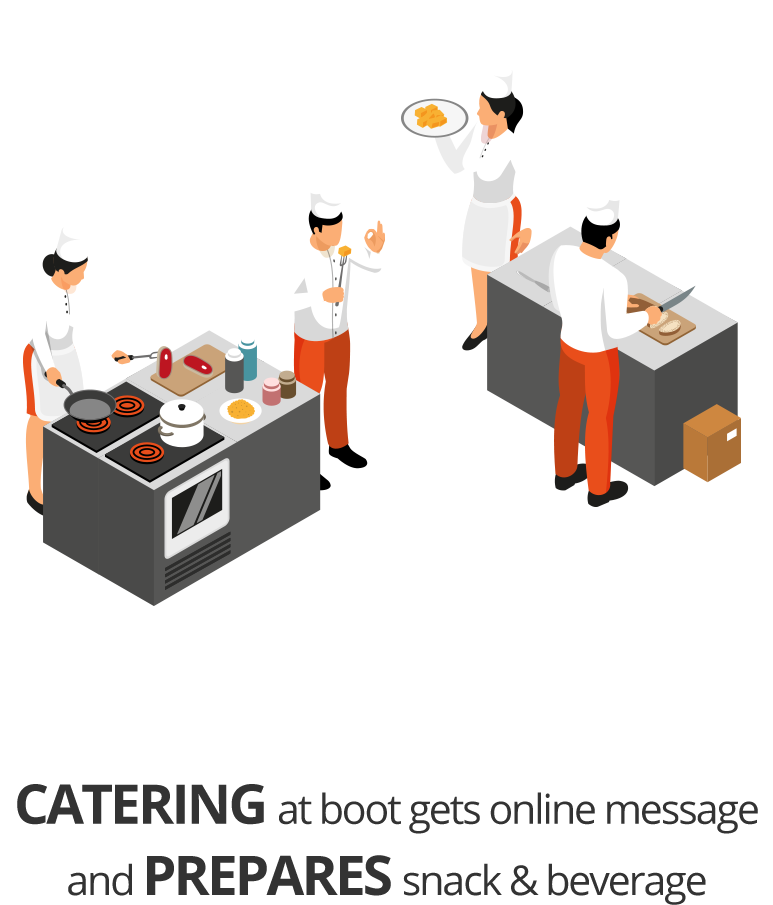 The famous online food ordering app Rakedi has been adapted for use at trade shows and events where visitors can get a drink and/or snack. Exhibitor salesforce can now spend more time with the visitor because the catering service of the fair or event receives orders via the salesforce smartphone or iPad.